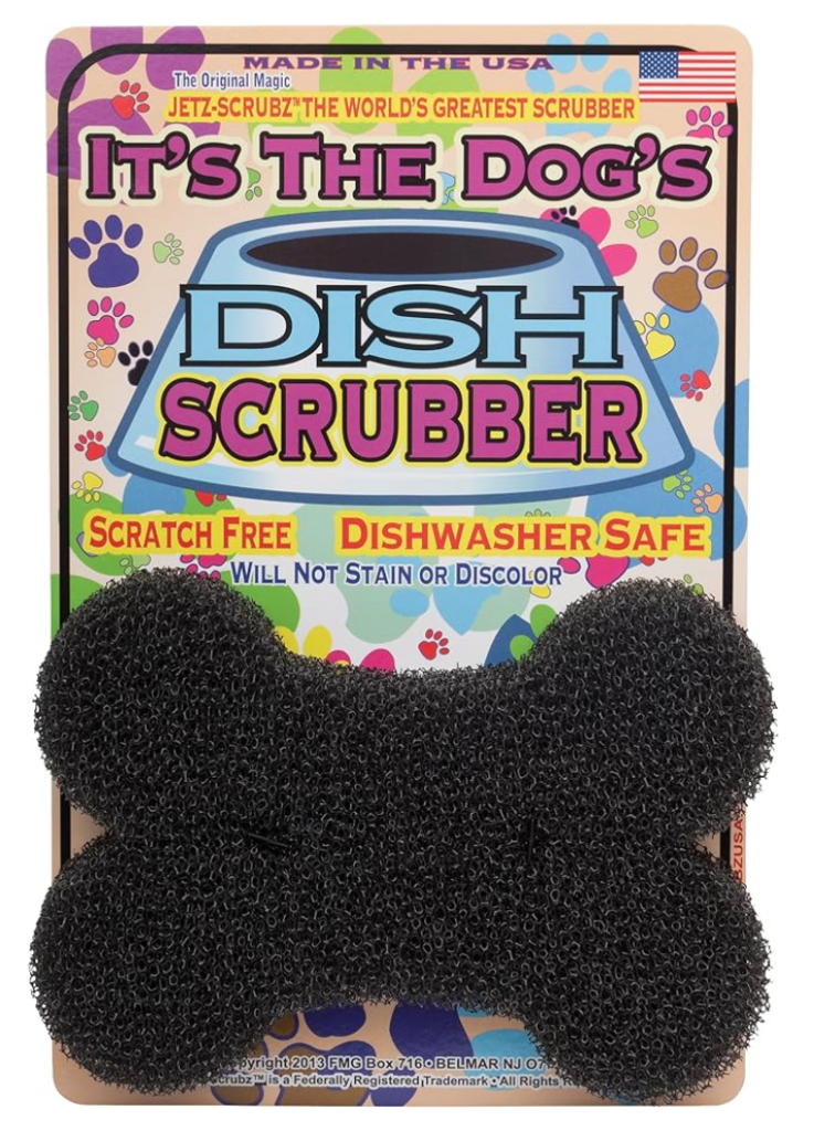 Of course your slow feed bowl needs to be kept clean. I recommend washing them at least a couple of times a week with water, a little dish soap, and some white vinegar. This scrubby sponge get those hard-to-reach places in the slow feed bowl. The dog bone shape helps you and other family member differentiate it between your regular household sponge, and it’s nearly half the price of the Scrub Daddy dog edition. Click here or on the photo below to learn more or to buy: