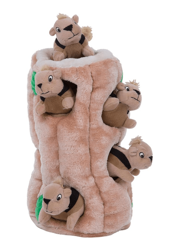 The Hide-A-Squirrel toys is one of my dogs’ favorites. Be sure to supervise your pup whenever they’re playing with soft toys to make sure they are not breaking them open and eating stuffing or fabric. Regularly check soft toys to make sure there aren’t any holes or tears. Click here or on the photo below to learn more or to buy: