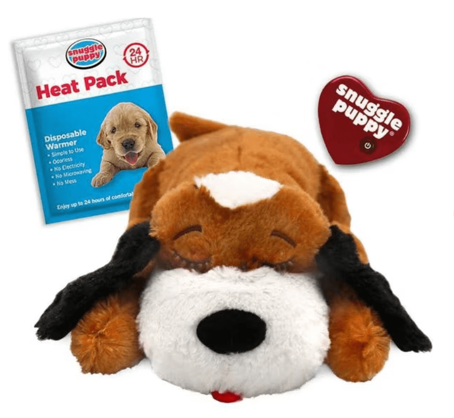 The Snuggle Puppy is such a great tool to have when you’re bringing home your puppy. It stays warm and simulates the sound of mom’s heartbeat! The Snuggle Puppy can make those first couple of weeks transitioning into a new home a lot easier for you and your new family member. I recommend that you sleep with it for a couple of nights before you give it to your puppy so that it can have your scent. 🙂 Click on the photo below to learn more or to buy: