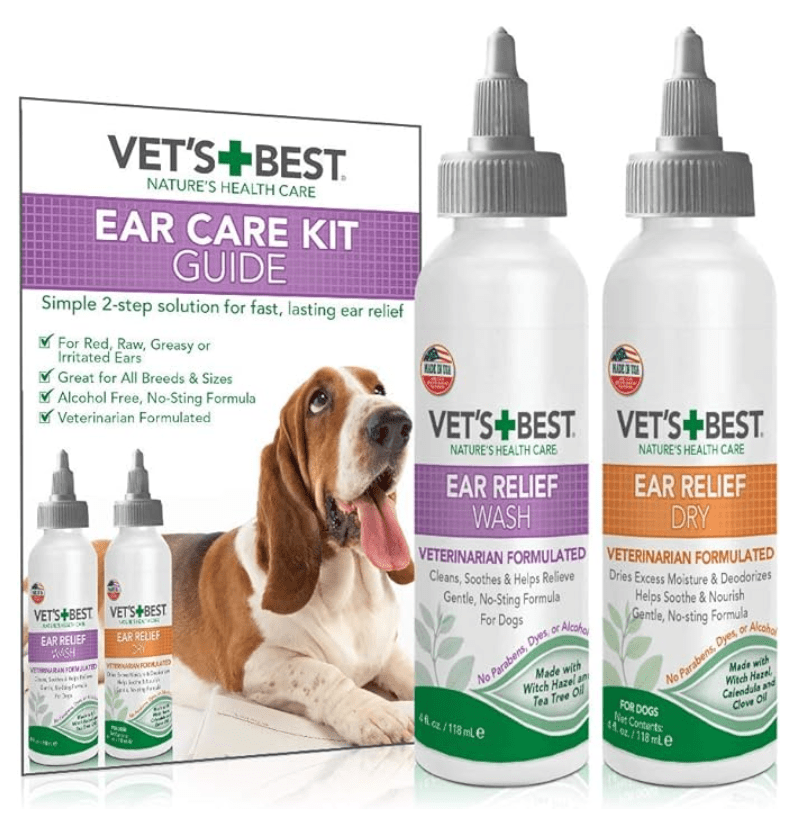 I always keep Vet’s Best Ear Relief on hand. It’s a two-part system that we use regularly, and I really believe it is what has helped us to keep ear infections at bay. I love the natural ingredients! The wash soothes irritated, itchy ears, and is made with tea tree oil, witch hazel, and chamomile. The drying cream keeps dog ears free of excess moisture, controls odor, and is made with calendula and clove oil. Click here or on the photo below to learn more or to buy: